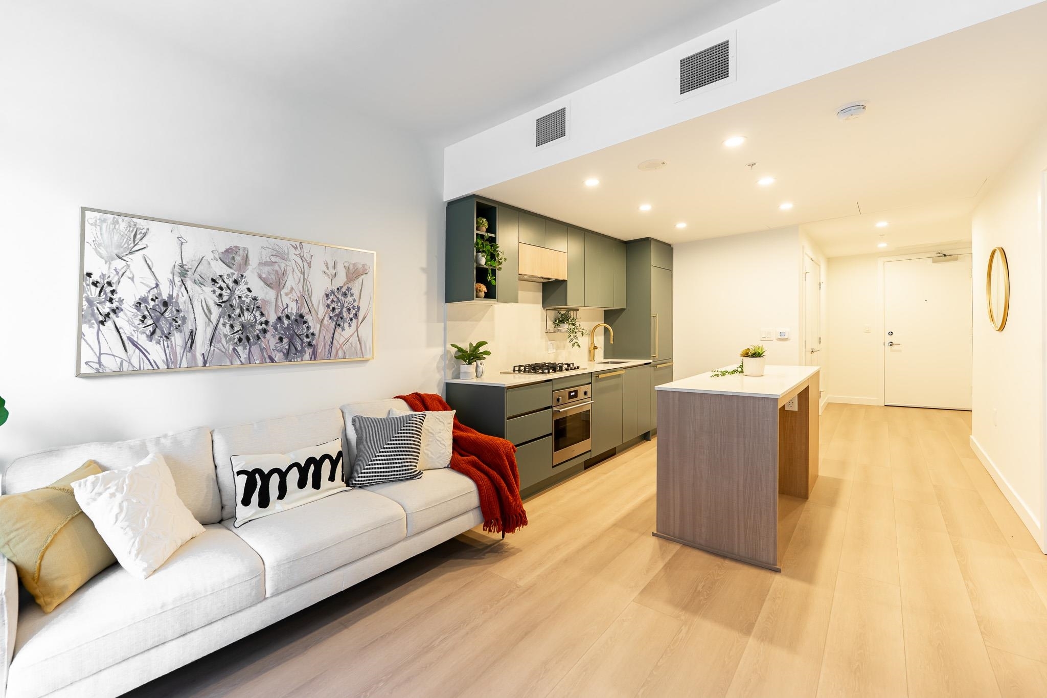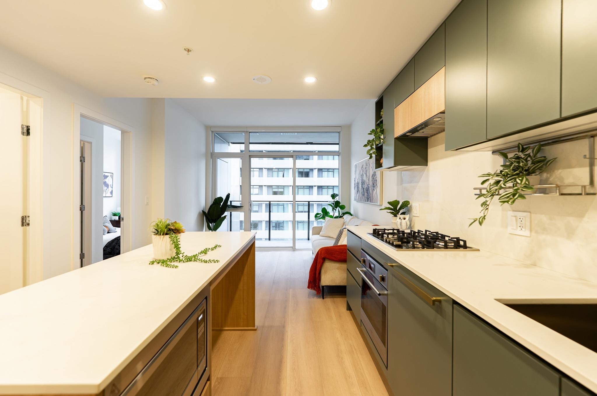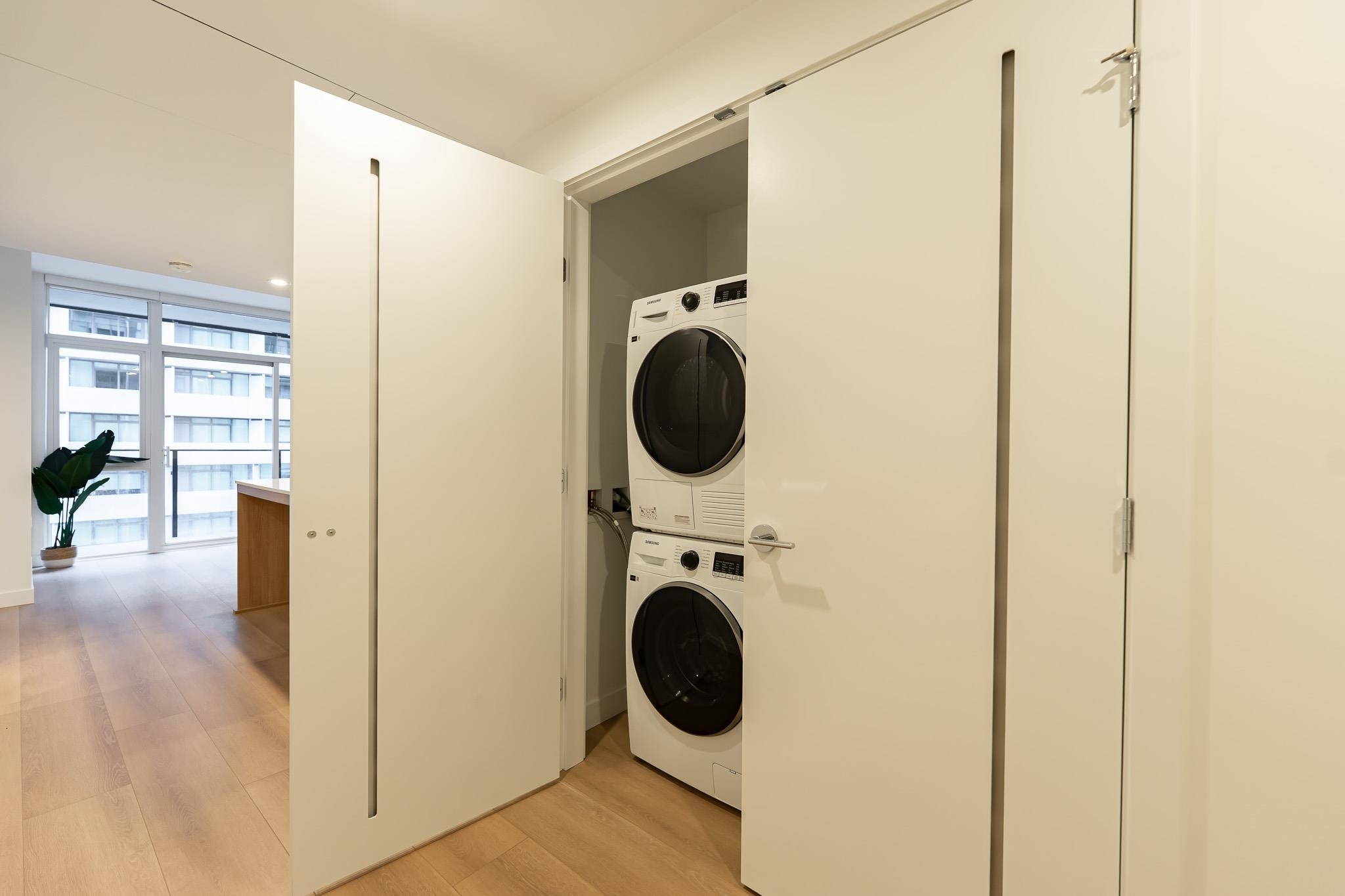 Brand new luxury air conditioned CONCRETE home right in the heart of King George Hub just minutes walk to everything including world class shopping, restaurants, the Skytrain and Holland Park! This brand new home features shockingly high end fixtures and materials: Fulgor Milano appliances, Grohe and Blanco fixtures, ductless laundry, one piece quartz backsplash, under cabinet lighting, floor to ceiling windows and craftsman grade meticulous finishing. The perfect layout features a gorgeous chef's kitchen and functional yet stylish kitchen island adorned with beautiful one piece quartz countertop. The sizeable bedroom features a generous walk in closet. Century City features 5 star amenities including fitness centre, co-working space, HUGE private dining lounge and theatre room, roof deck.